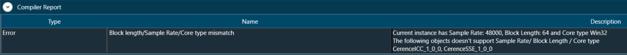 – The toolbox will filter audio objects based on the core type of the physical core where this Framework instance is added. The audio object will be marked with an exclamation mark to indicate that it cannot be used for building signal flow. You can hover over it to see which core types are supported.