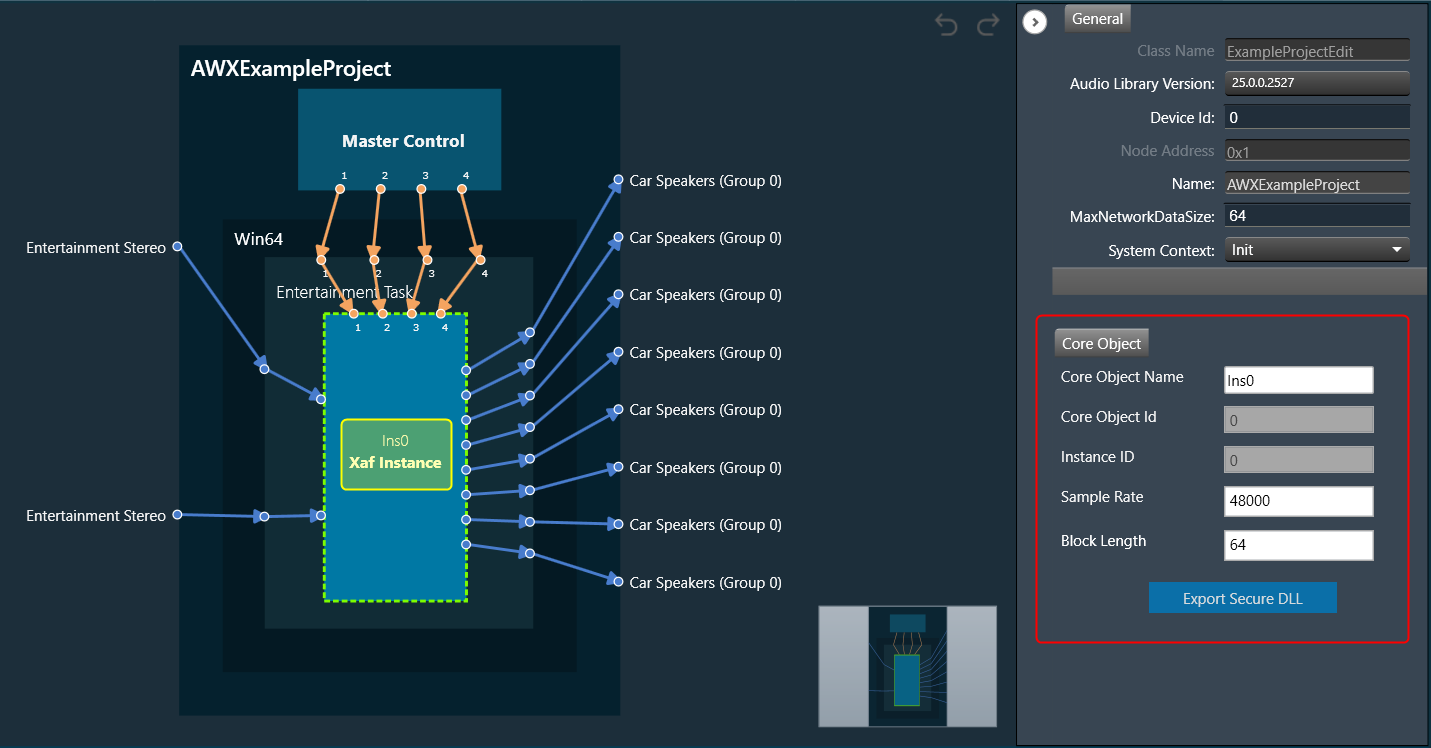 The Master Control interface is not an audio object, but an entity in the xAF framework which enables the user to define control inputs to the device.