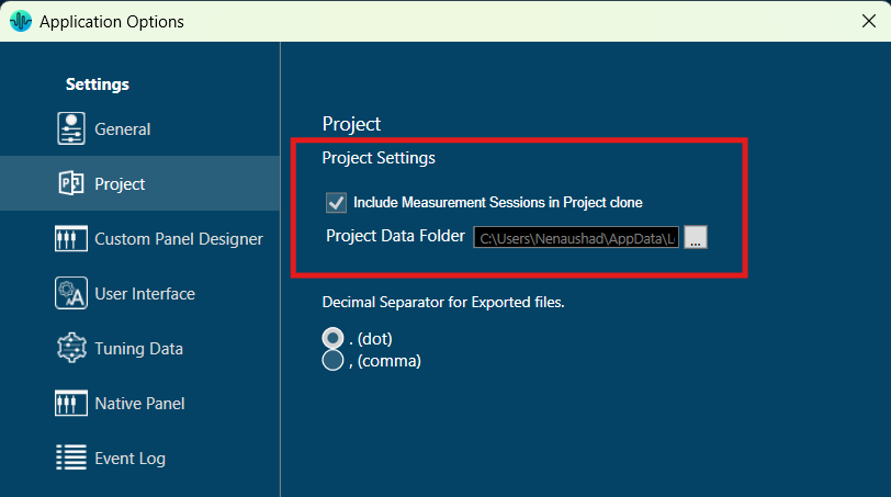 If you want to exclude measurement session data from the exported project, make sure to configure the project settings prior to initiating the export process.